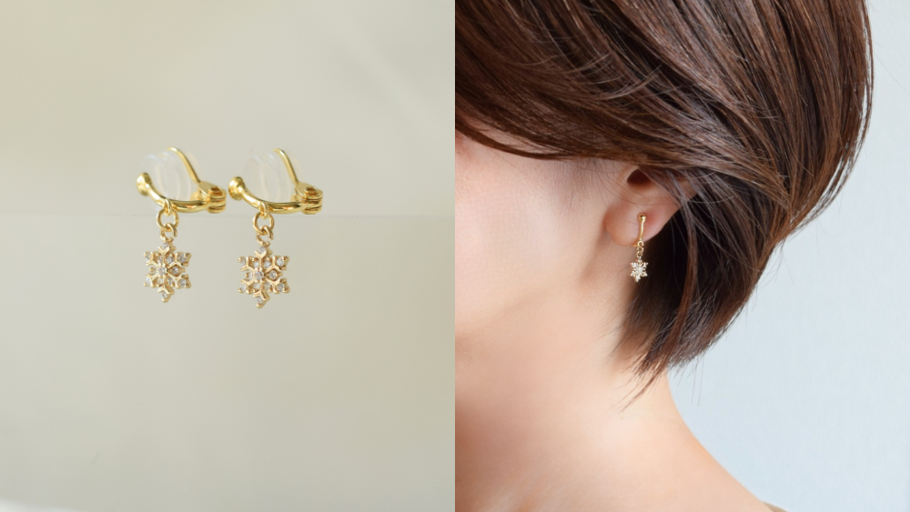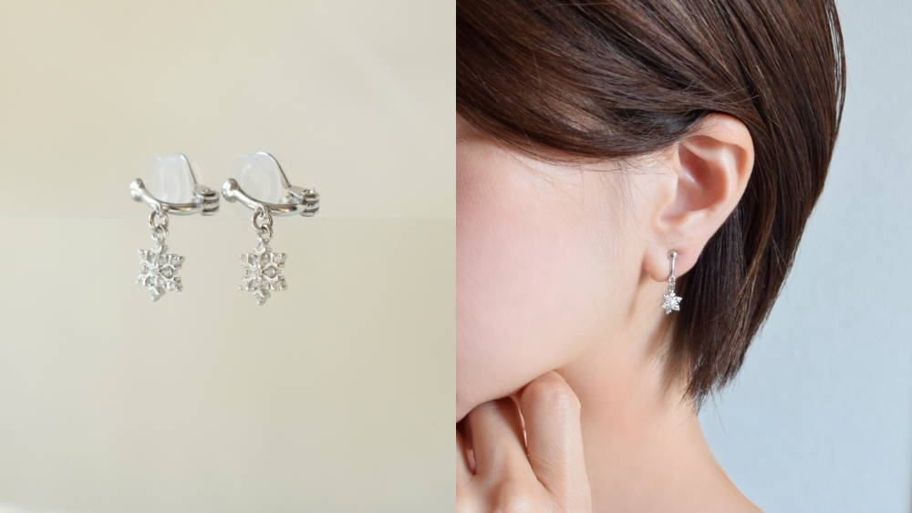 冬の季節の耳元・首元に、さりげなく煌めきを与えてくれるイヤリングです。