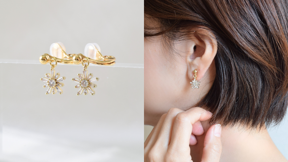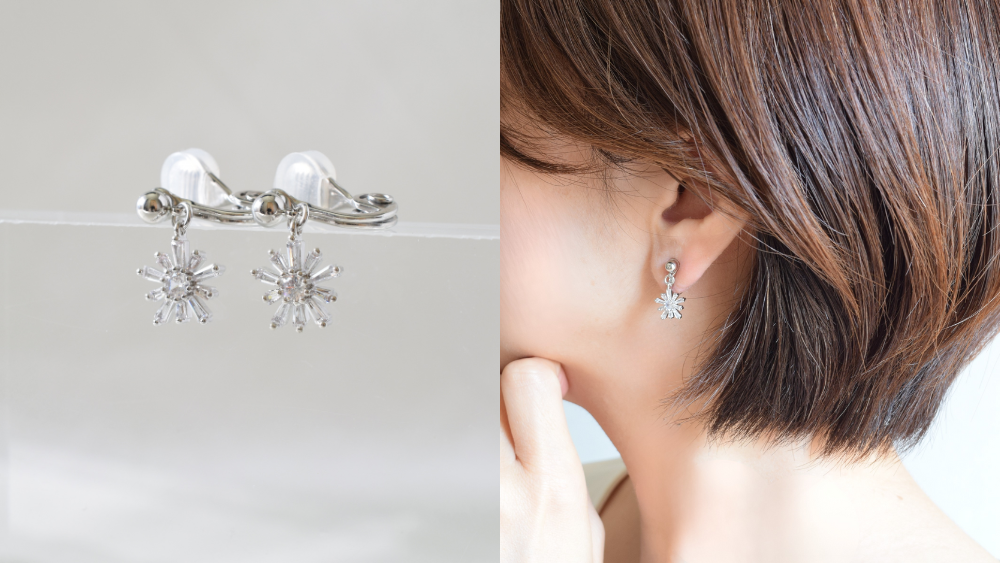 放射状に広がる形状が美しく、つけるだけで高級感漂う耳元に。