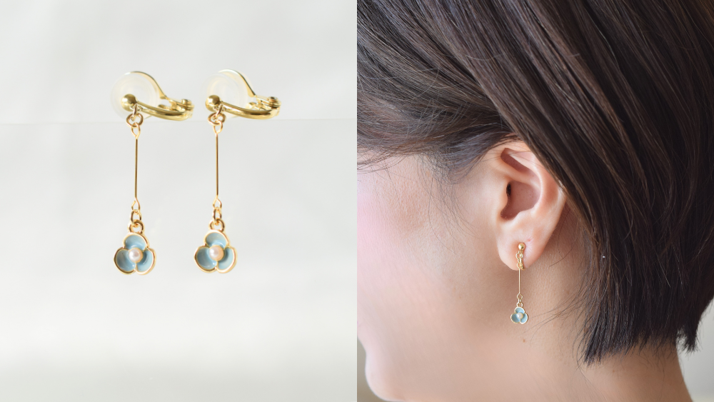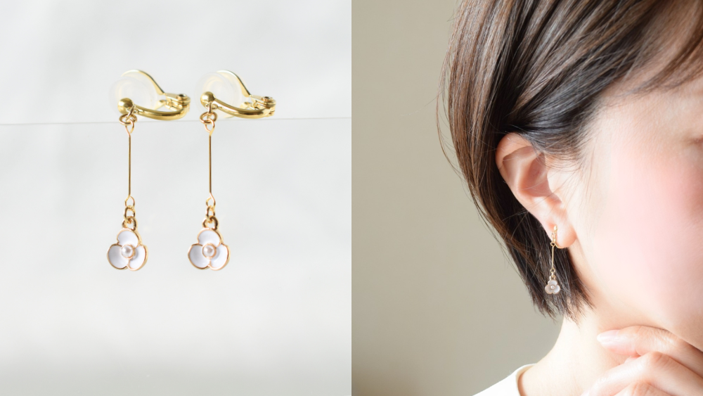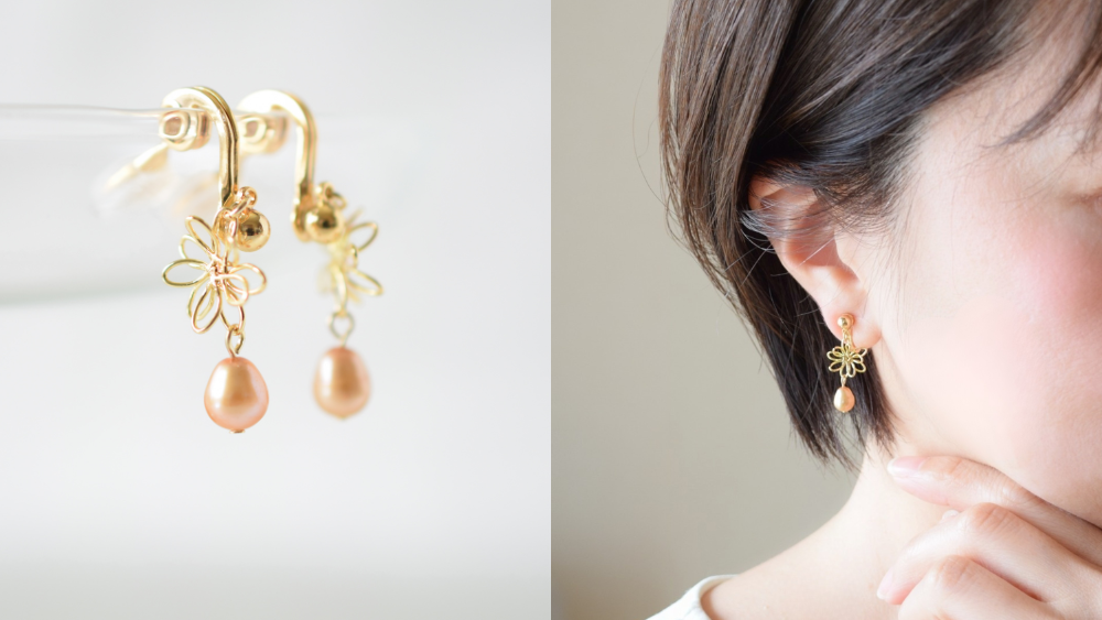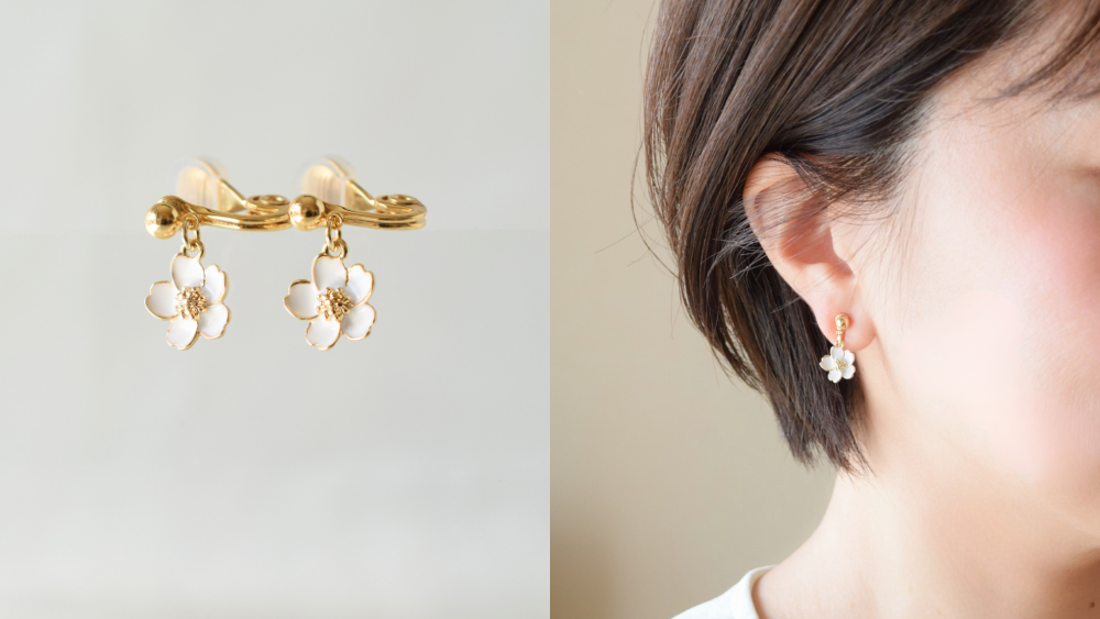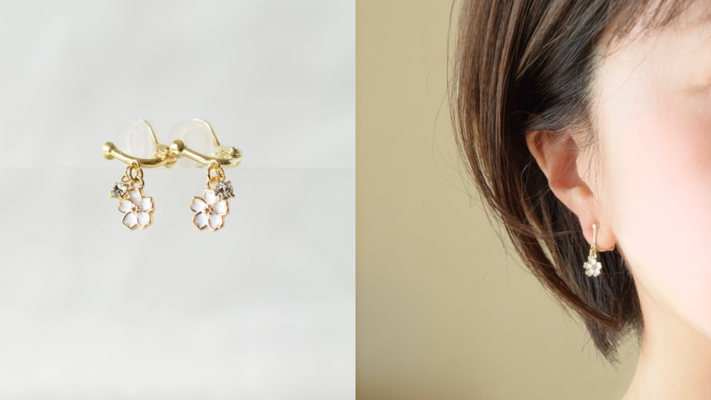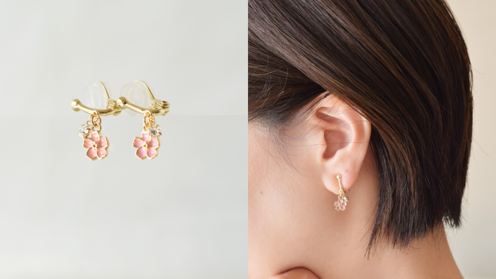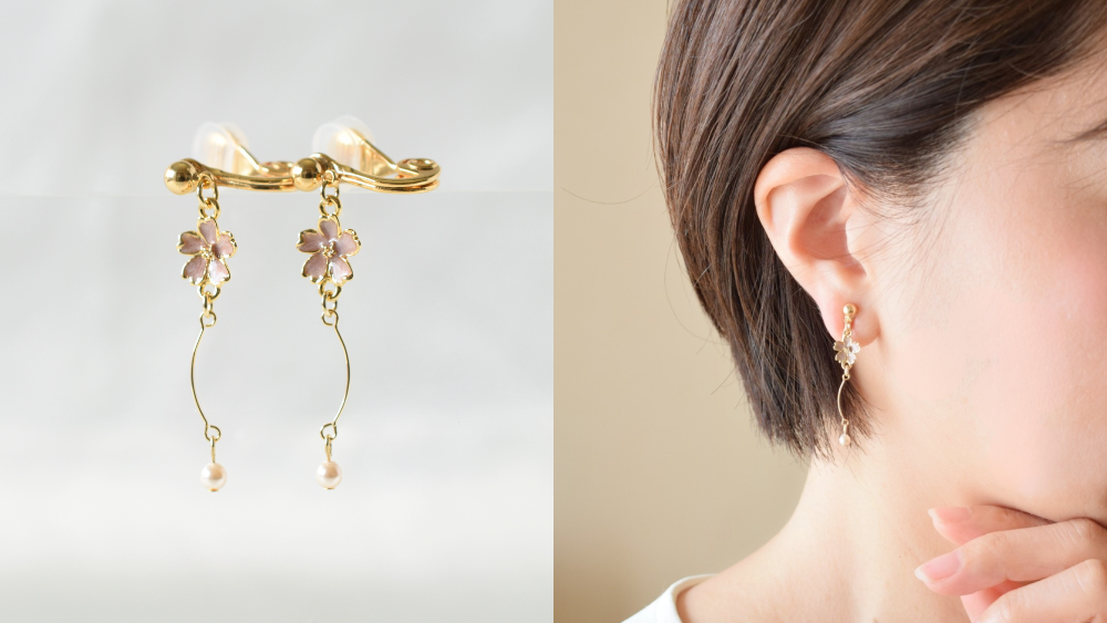 耳下で小刻みに揺れる桜の花びらが可愛らしいデザインです。